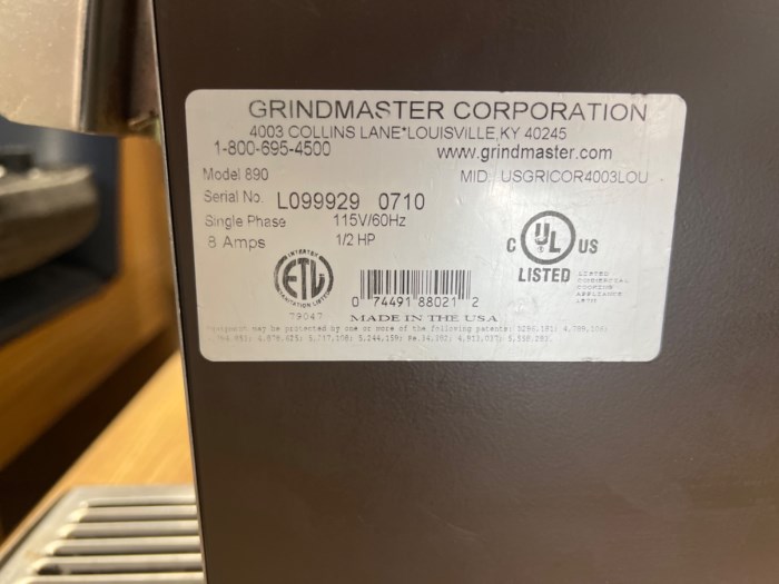 Grindmaster Corp. Model: 890 Coffee Grinder