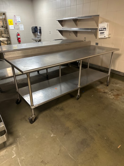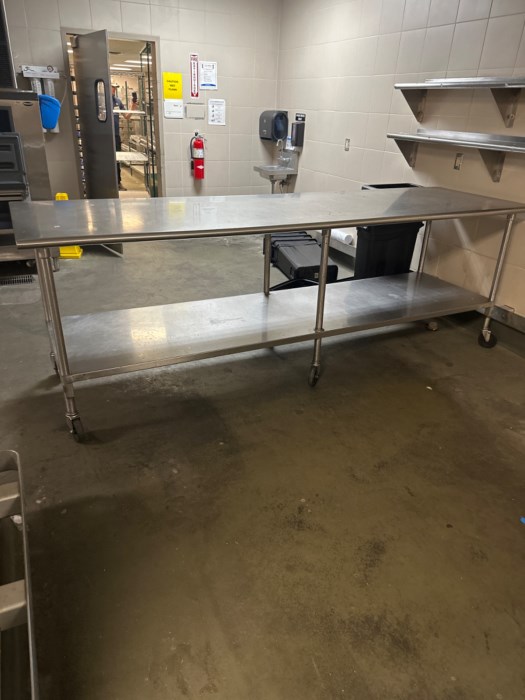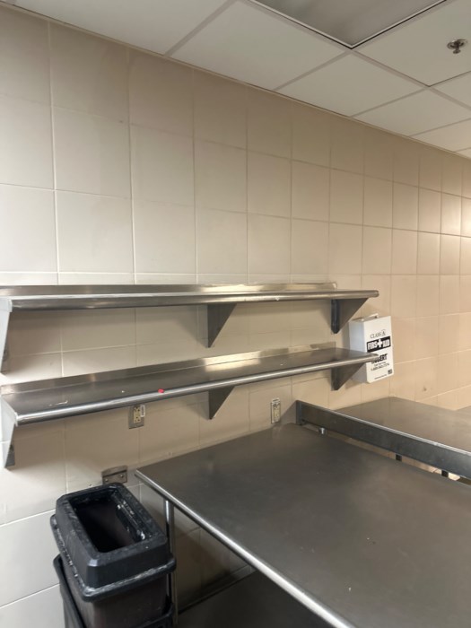 Industrial Restaurant Prep Tables (3) & Wall Mounted Shelves (2)