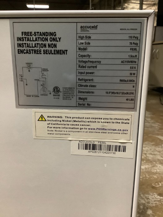 Make: Frisher Scientific, Accucold