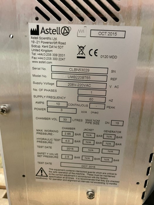 Astell Front Loading Autoclave 2015 Model
