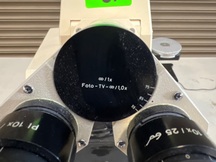 Carl Zeiss Axiotron Tabletop Microscope Equipped with: - (2) PL 10X/25 44 40 34 Eye Pieces Powered on at time of auction