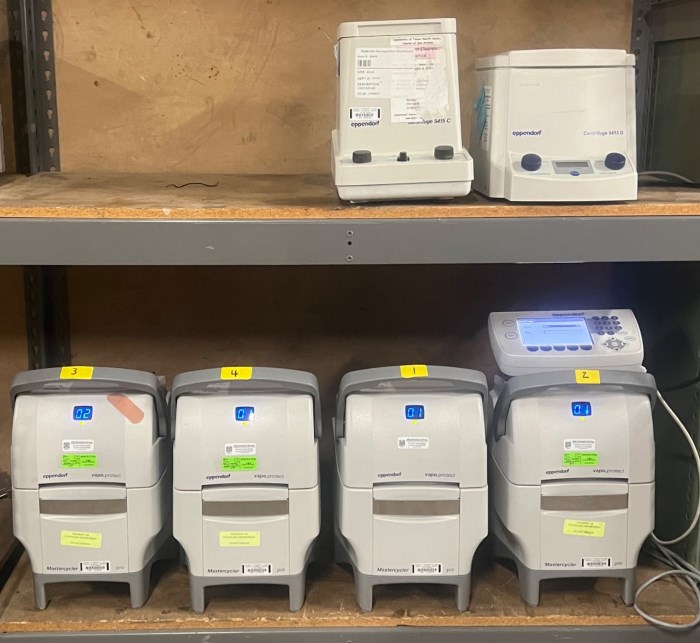 Eppendorf Laboratory Equipment (Lot of 6 Pieces) Includes: - (4) Mastercyclers Pro (All units powered on at time of auction) - (1) Eppendorf Centrifuge 5415 D - (1) Eppendorf Centrifuge 5415 C