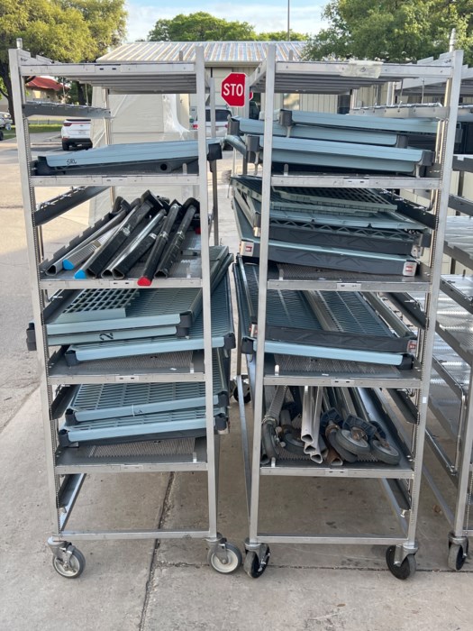 Lab Products Metal Shelving Carts (4) w/ Extra Shelving - Note: Items are being stored outdoors