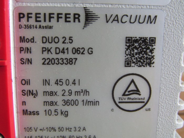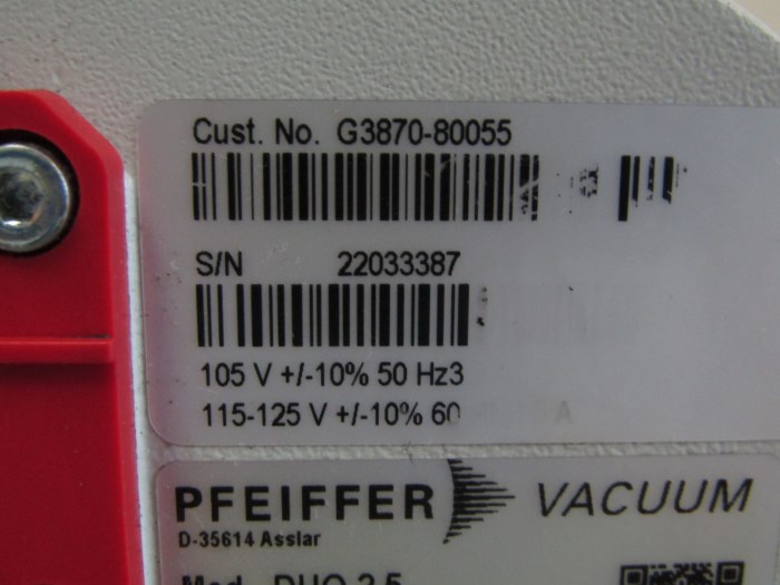 Pfeiffer Vacuum Duo Line DUO 2.5 Agilent G3870-80055 Rotary Vane Vacuum Pump