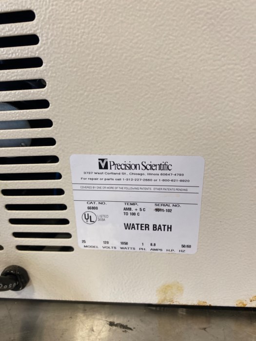 Precision Scientific Reciprocal Shaking Water Bath Model 25 *Powered on at time of auction*