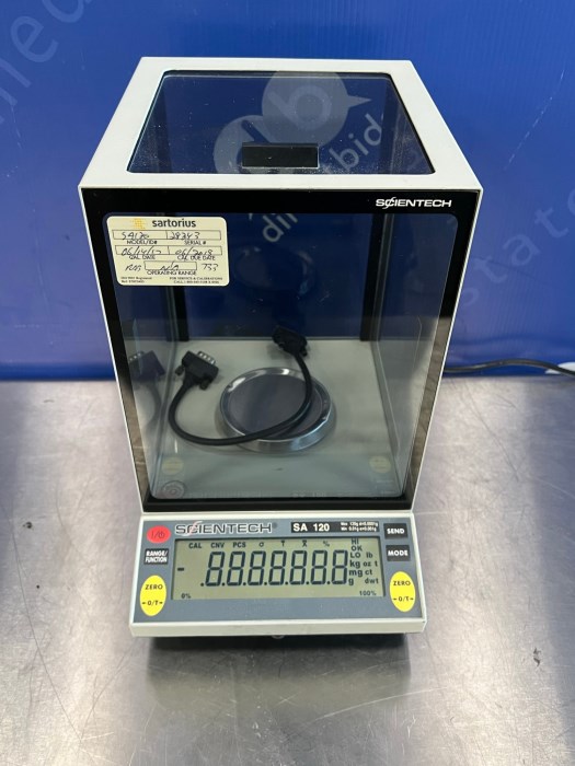 Scientech Koehler Analytical Lab Electronic Balance Scale SA 120 (Lot of 4) - All units powered on at time of auction