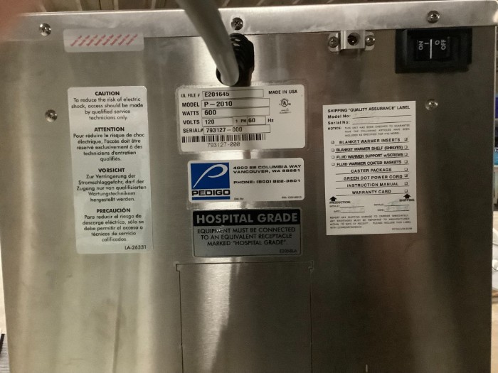 (1) Pedigo P-2010 Blanket / Fluid Warmer