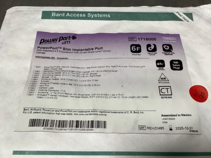 2 Bard PowerPort Slim Implantable Port (REF 1716000)