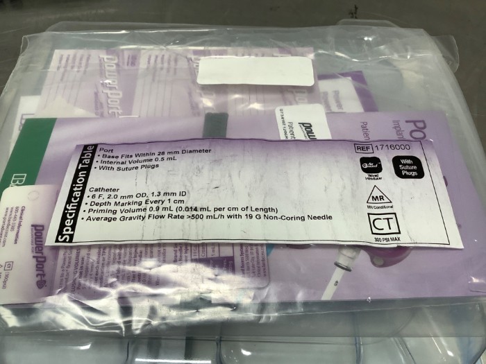 2 Bard PowerPort Slim Implantable Port (REF 1716000) with Attachable 6F Polyurethane Open- Ended Single- Lumen Venous Catheter.