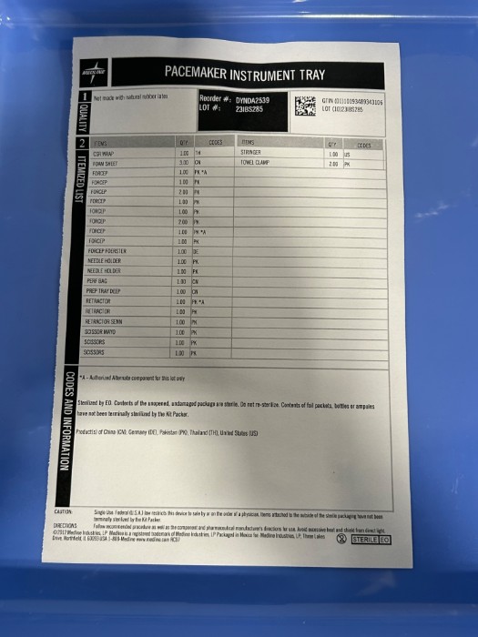 Pacemaker Instrument Tray (Lot#: H43059 - ID: y6ofd31y)