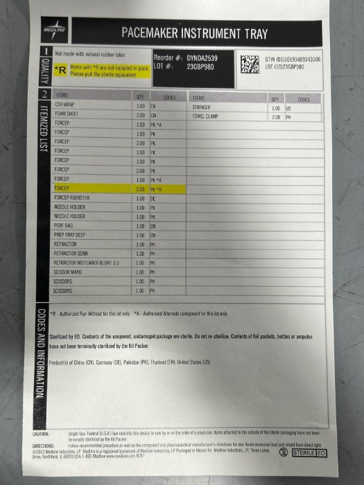 Pacemaker Instrument Tray (Lot#: H43080 - ID: y02ntqqz)