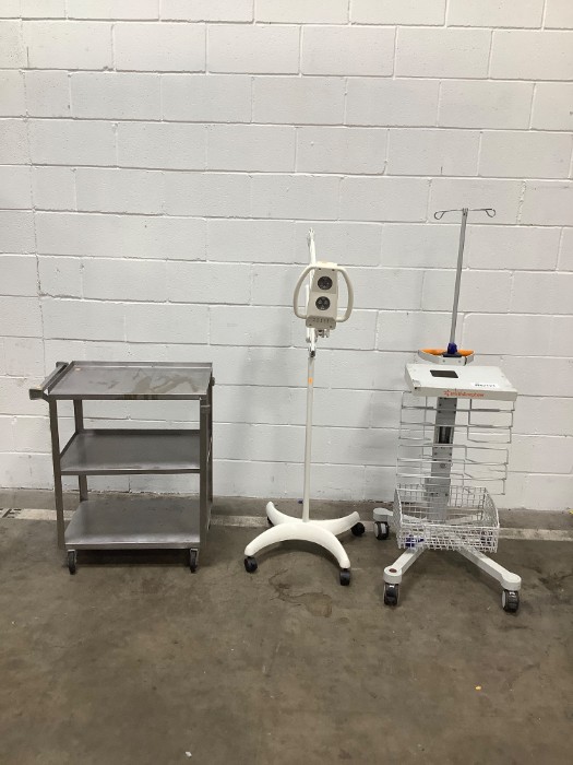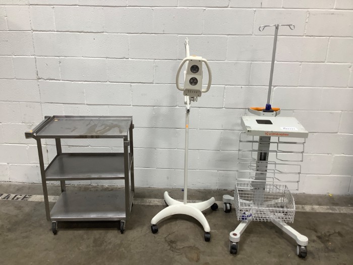 Burton NXFL Examination Lamp + 2 Medical Carts (Lot#: H42121 - ID: yi8o24iz)