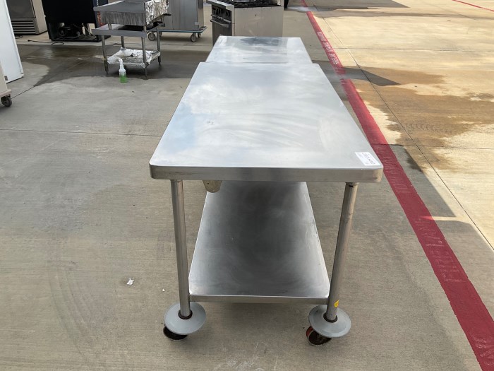 Two stainless steel food service equipment tables