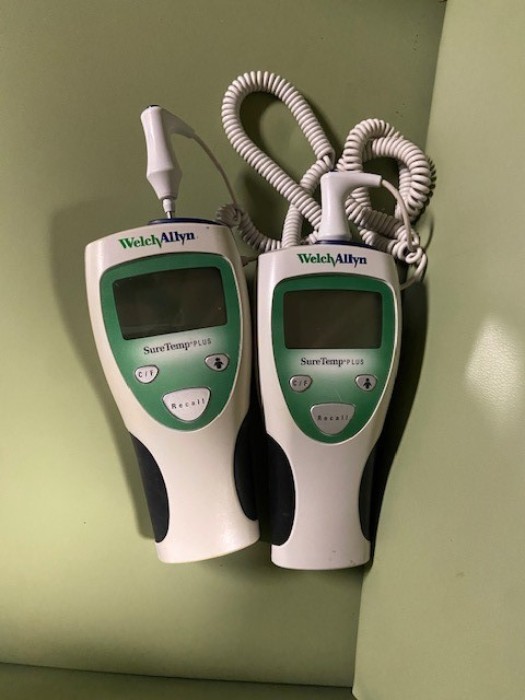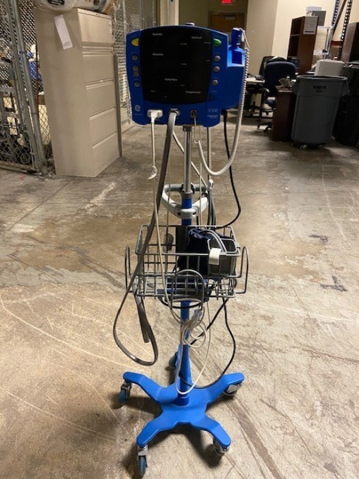 (2) Sure temp plus thermometer (1) Sphygmomanometer (1) Good-Lite Model A Eye Chart (1) V100 Vital signs monitor