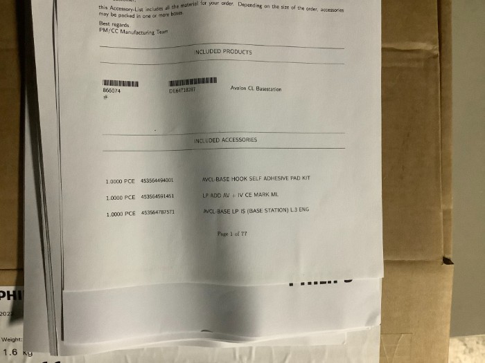(3) IntellieVue CL Charging Station (5) Avalon CL Basestation
