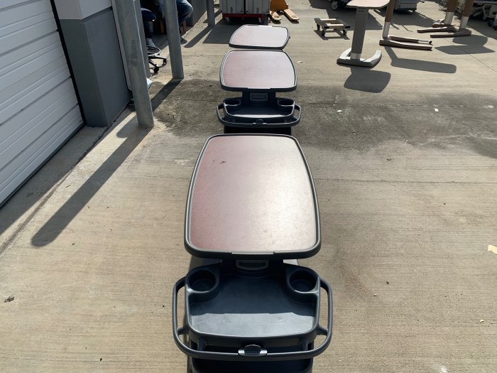 3 Stryker overbed tables with storage compartments