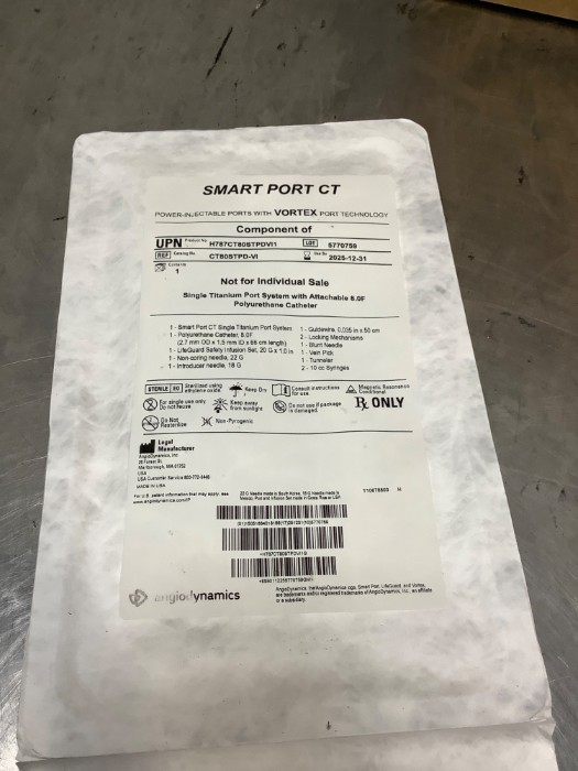 8 AngioDynamics Smart Port CT low-profile titanium port system with Vortex technology