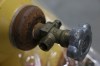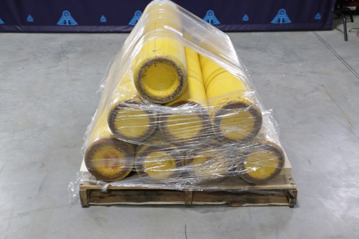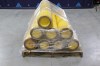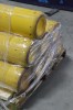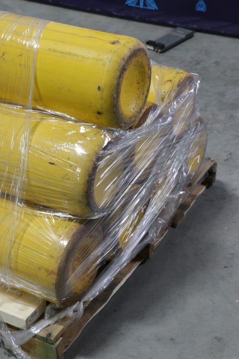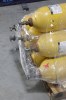 Eight empty yellow air compressor cylinders