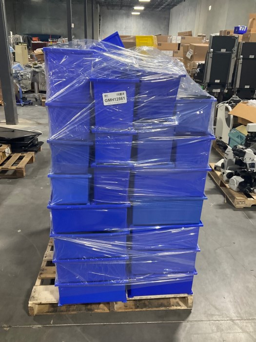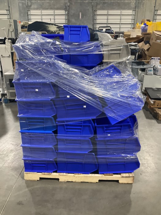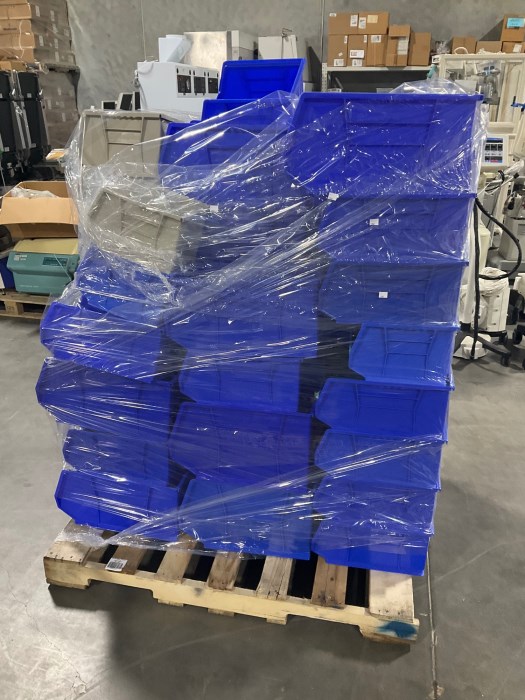 Assorted Bins. Miner wear and tear from general use. SOLD AS IS