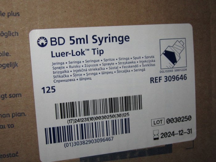 BD NEXIVA DIFFUSICS 24GAX0.75 IN. EXPIRES 12-31-2022. 160 PIECES; BD 309646 5ML SYRINGE LUER-LOK TIP. 250 PIECES TOTAL; BD 382523 INSYTE AUTOGUARD 22GA X 1 INCH 400 TOTAL PIECES EXPIRES 10-2021. This item was obtained from American Medical Depot - a large medical distributor in the US that went bankrupt. Paperwork of the bankrupcy is available upon request.