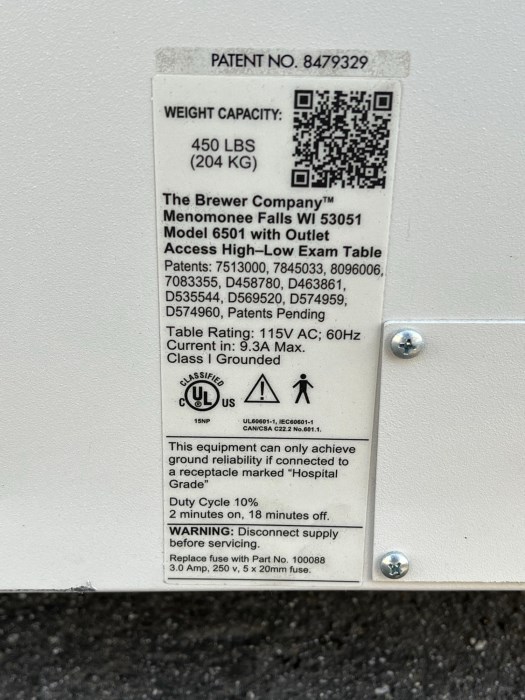 Brewer Model: 6501 Access High-Low Examination Table