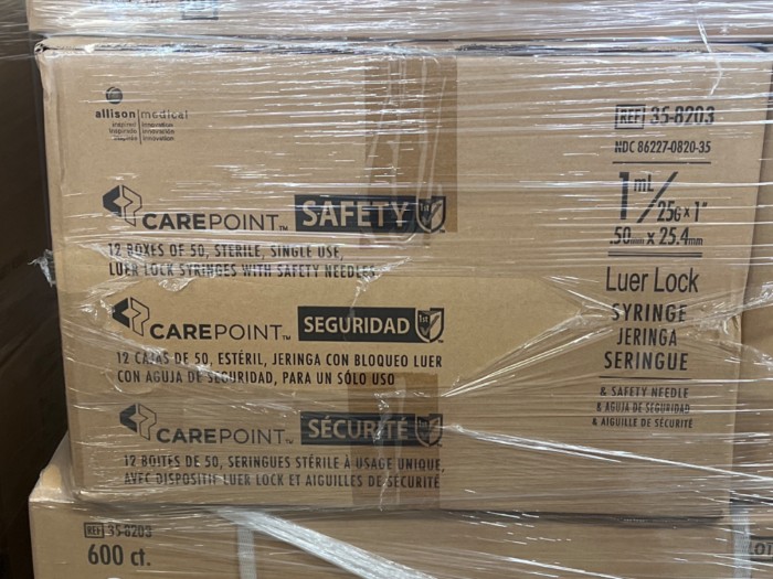 CarePoint Safety 1mL 25Gx1" (50mm x 25.4mm) Luer Lock Syringe (Lot of 1 Pallet) - Includes approximate 20 cases with 600 units per case