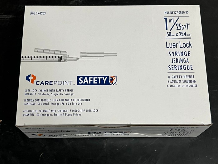 CarePoint Safety 1mL 25Gx1" (50mm x 25.4mm) Luer Lock Syringe (Lot of 1 Pallet)