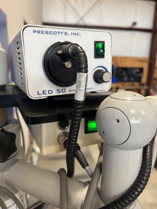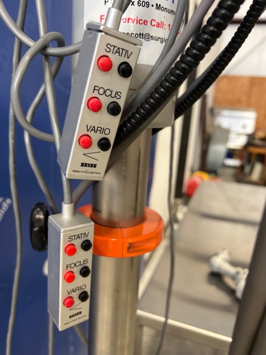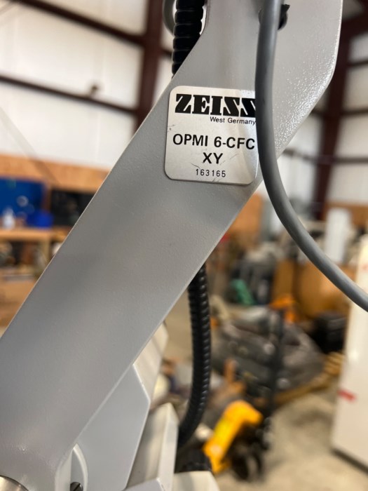Carl Zeiss OPMI 6-CFC Surgical Microscope w/Stand; Light Source; And Attachment. ***POWERED ON AT TIME OF AUCTION***