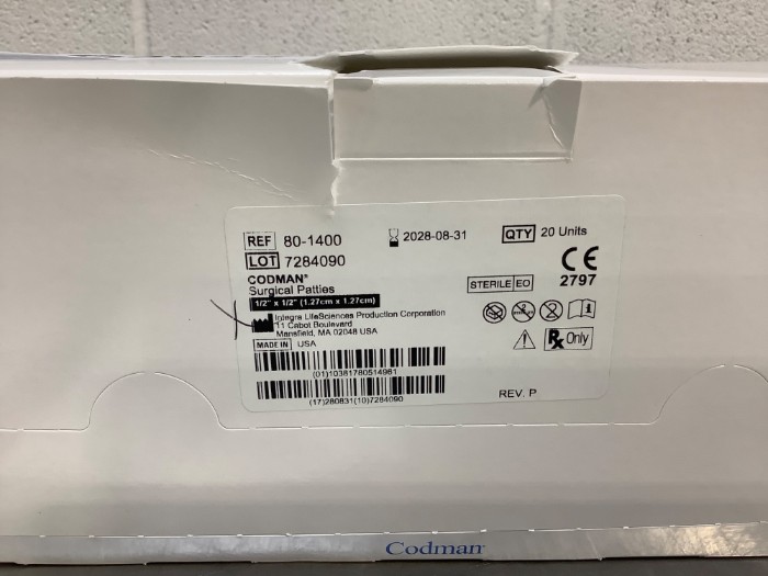 Codman Surgical Patties Ref 80-1400 1/2”x1/2” 40 PCs apx