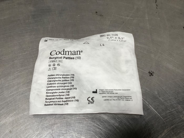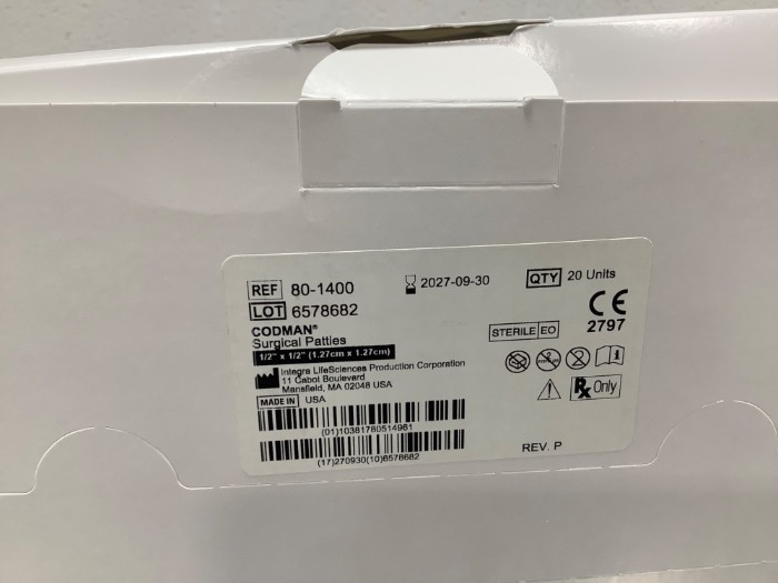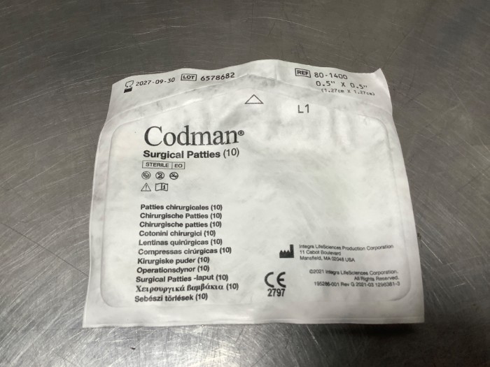 Codman Surgical Patties Ref 80-1400 1/2”x1/2”