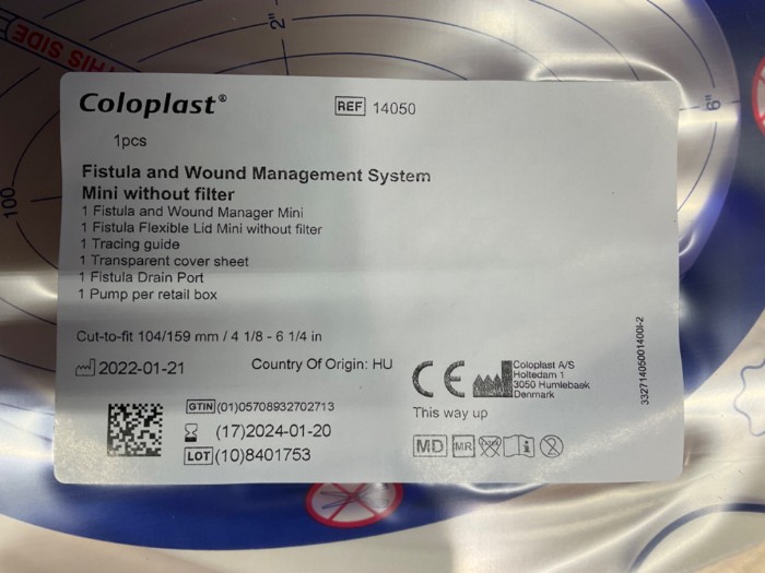 ColoPlast 14050 Fistula and Wound Management System Mini Without Filter