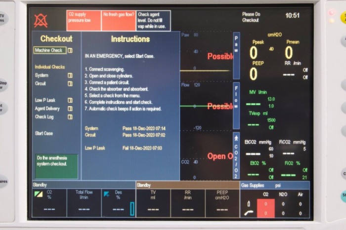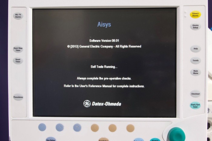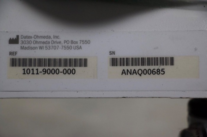 This unit is in good physical condition and powers on without error. This unit include several modules and a Aladin2 Desflurane vaporizer. This unit has not been fully tested with anesthesia gases.
