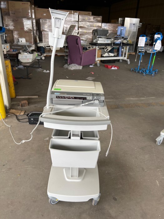 GE MAC 5500 ECG MACHINE/W CART **OPERATIONAL AT TIME OF AUCTION** **POWERED ON AT TIME OF AUCTION** The GE MAC 5500 HD Interpretive EKG Machine can perform a 15 lead analysis with interpretation. The information is displayed on a 10.4” backlit color AM-LCD display. It includes a full alphanumeric keyboard, making it easier to input patient demographics. Its single button operation for printing, storage, and transmitting, makes it truly easy to use and will help streamline your workflow. The Refurbished GE MAC 5500 HD Interpretive EKG Machine can provide full-page printouts. It utilizes gender and age-specific interpretation criteria when generating g a 12SL diagnosis. It also has a QRS and P-wave signal averaging program which enhances measurement and accuracy.