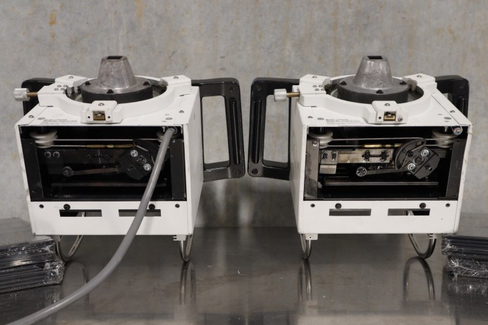 These collimators are in fair condition but the cables have been cut. It's likely that you could re-splice them and bring then back to a functional state, otherwise, they're great for parts.