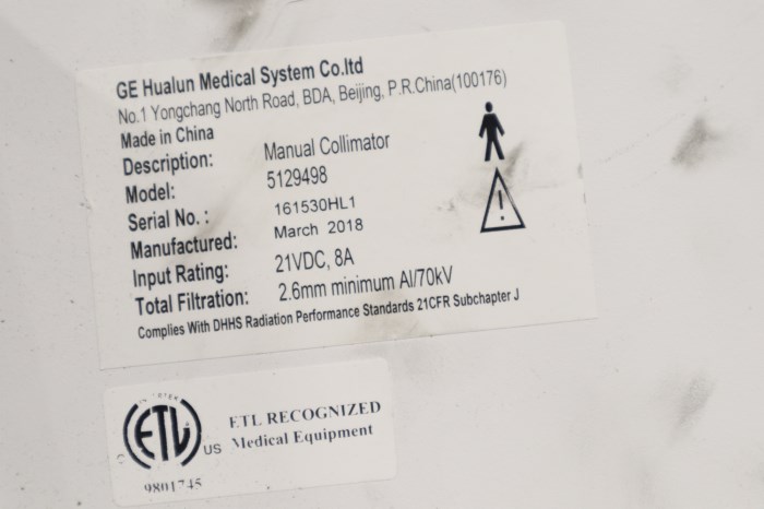 GE Portable X-Ray Manual Collimator