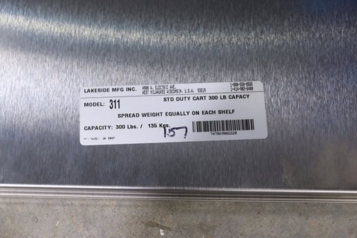 Lakeside 311 Standard Duty Stainless Steel 3 Shelf Utility Cart