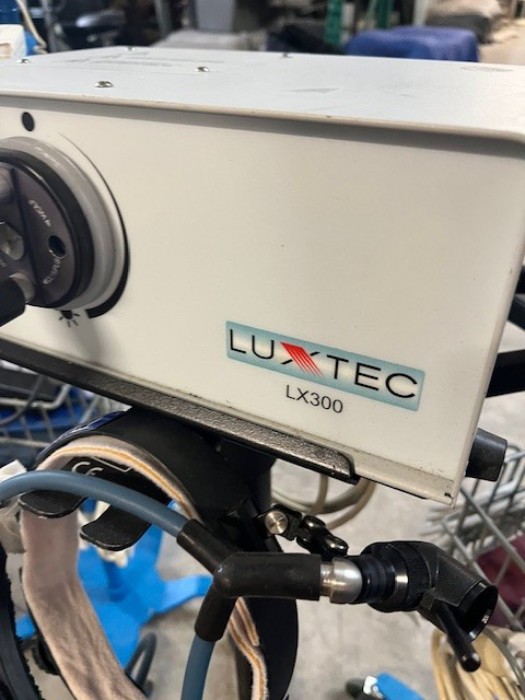 Luxtec LX300 light source, DinaMap V100, ProCare, powered on at time of auction. DinaMaps may need batteries. Lot for Parts
