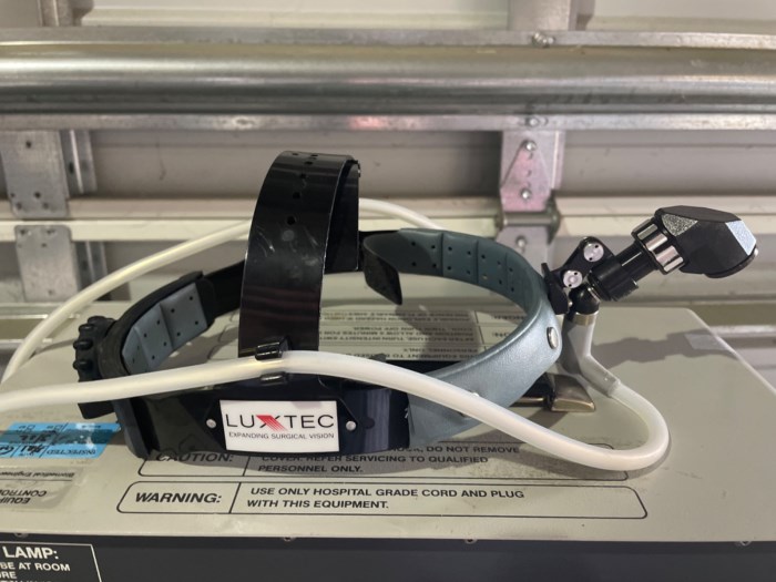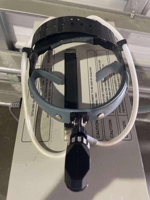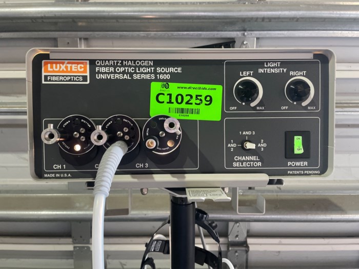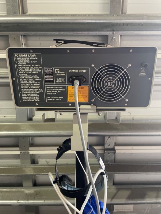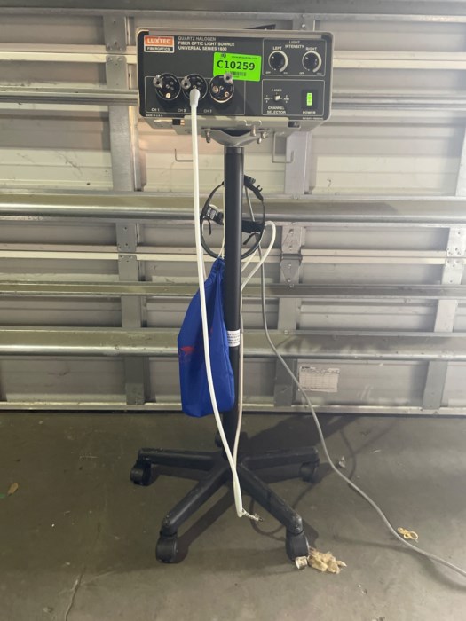 Luxtec FiberOptics Quartz Halogen Fiber Optic Light Sour r - Universal Series 1600 Equipped w/ Luxtec Headset - Powered on at time of auction