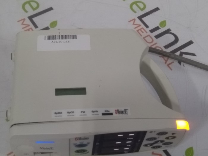 Material Desc.: Rad 87 / OEM: Masimo / Modality: Patient Monitors / Serial #: R08006 / Cosmetic Condition: Good / Functional Condition: Untested / Package Type: Small Package / Weight: 2