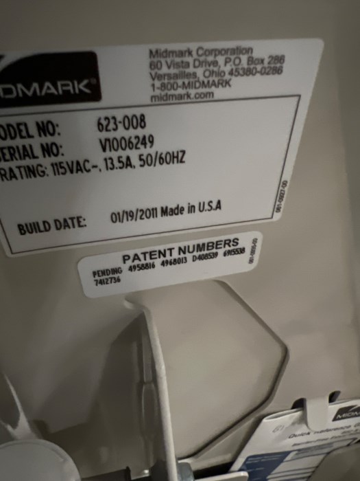 MidMark model 623-008 Build date-1/19/11