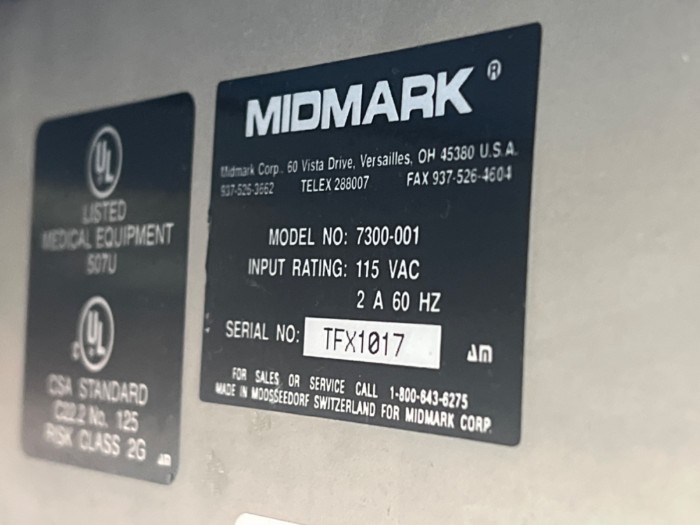 Midmark Model: 7300-001 Surgical Table - Powered on and was operationally but not fully tested.