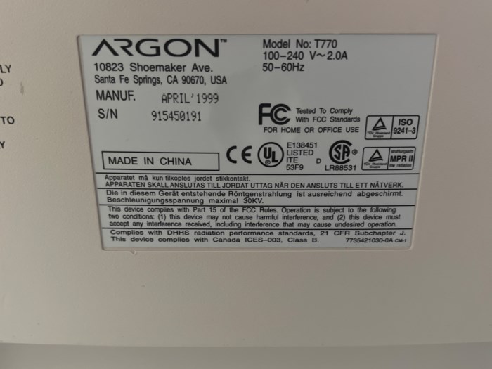 Asset Numbers (internal use): 000193