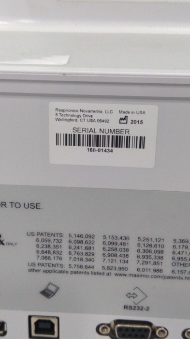 Material Desc.: NM3 / OEM: Philips Healthcare / Modality: Respiratory / Serial #: 168-01434 / Cosmetic Condition: Good / Functional Condition: Untested / Package Type: Small Package / Weight: 10