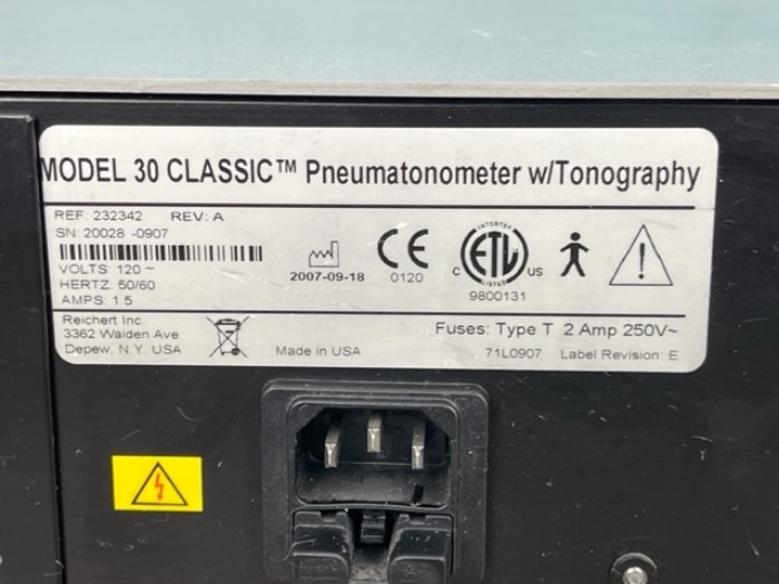 REICHERT 30 CLASSIC PNEUMATONOMETER W/ TONOGRAPHY (D65)