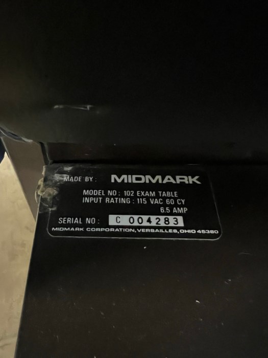 Ritter Model: 102 Exam Table