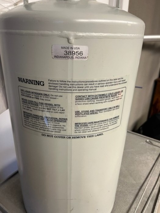 Storage Dewar – Liquid Nitrogen. Condition Unknown. SOLD AS LOT.