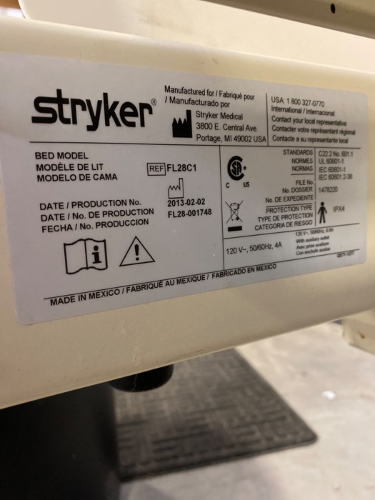 Stryker Electric Hospital Bed Model FL28-001748