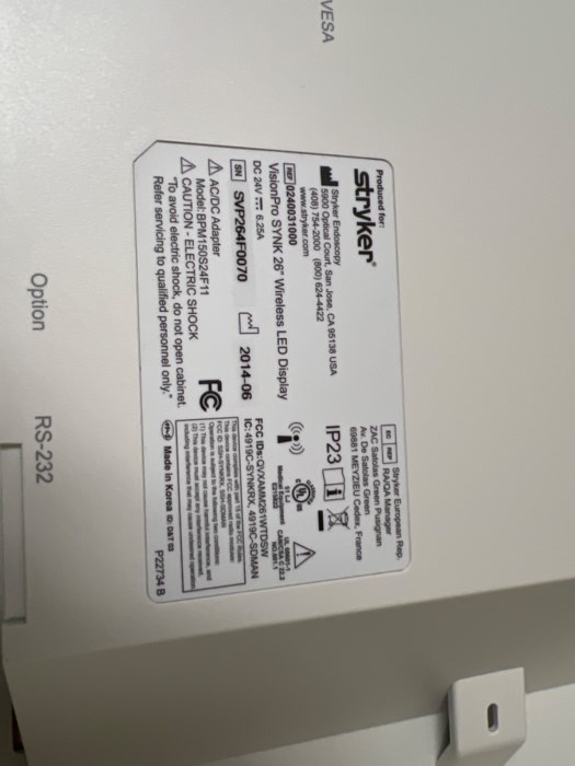 Stryker VisionPro SYNK Wireless LED Display with clear shield