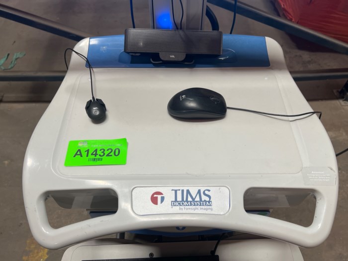 TIMS Dixon Systems by Foresight Imaging Video Platform Rolling Cart - Unit powered on at time of auction however hard-drive has been removed from CPU