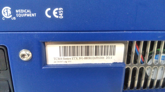 Material Desc.: TCM4 / OEM: Tina / Modality: Patient Monitors / Serial #: 391-880R0263N006 / Cosmetic Condition: Good / Functional Condition: Non Functional / Package Type: Small Package / Weight: 11